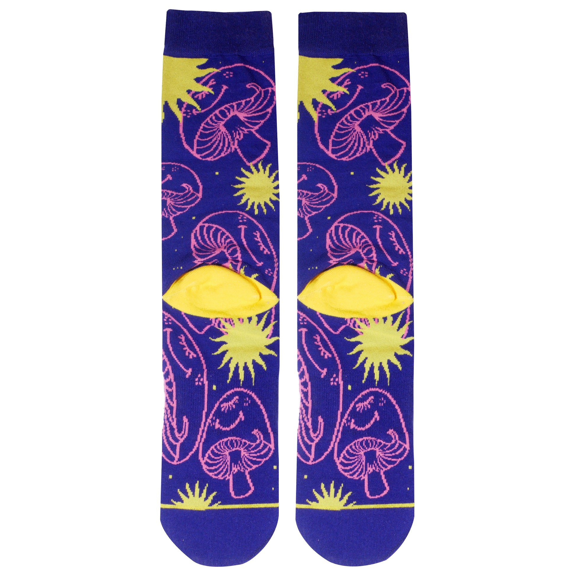 The Fun Guy. Combining bold creativity with everyday comfort, they bring a fresh, artistic touch to your wardrobe while keeping your feet cozy and stylish. Featuring a Y-stitched heel for a perfect fit, they keep your feet dry with effective moisture-wicking fabric. The padded footbed cushions every step, while the never slip cuff ensures they stay securely in place. Plus, built-in anti-microbial properties keep your feet fresh all day long
