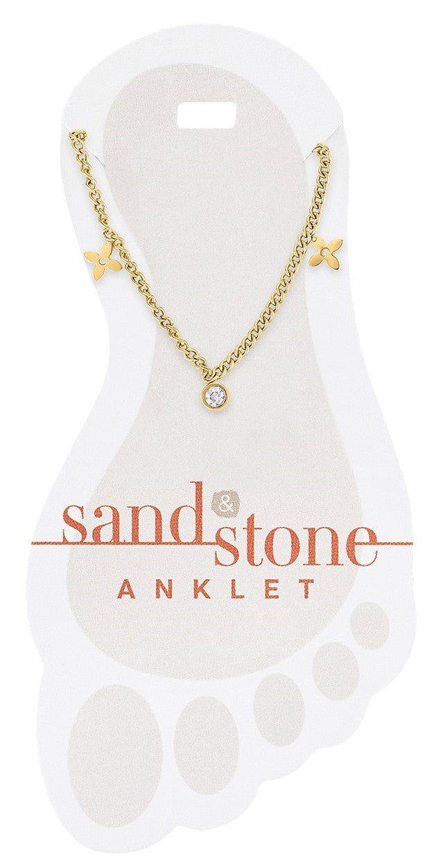 Gold Clover Dangle Sand & Stone Anklet